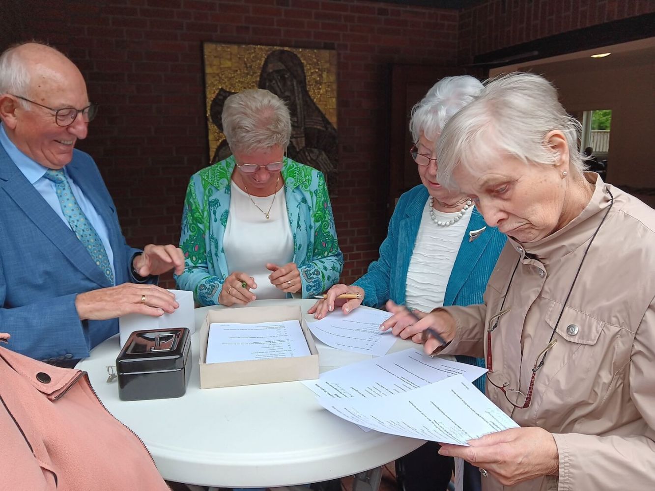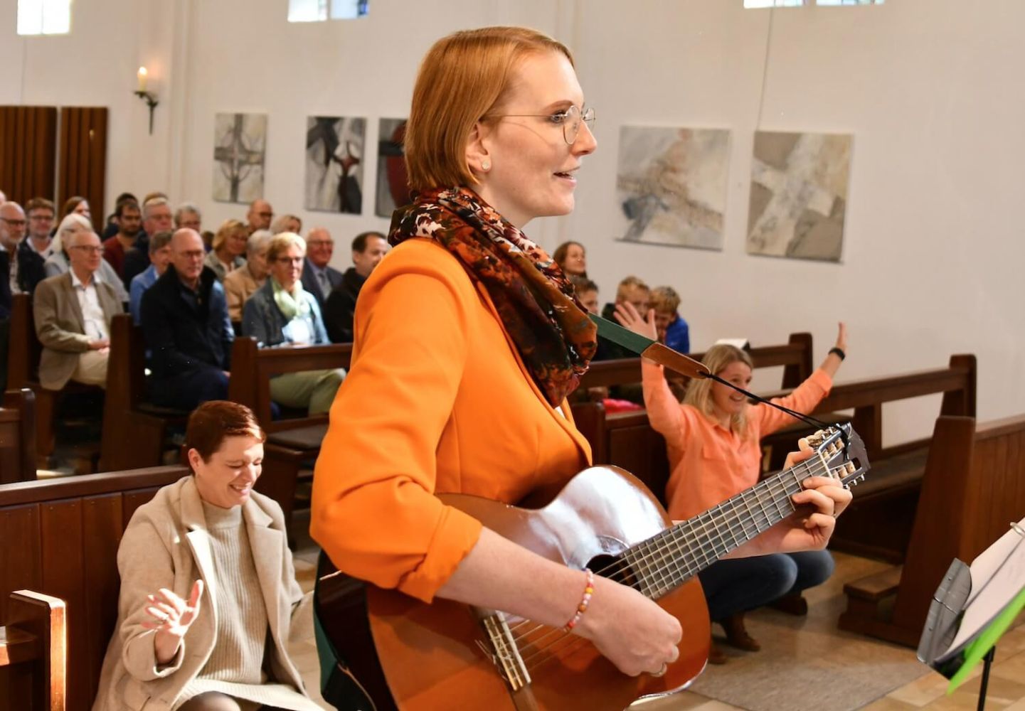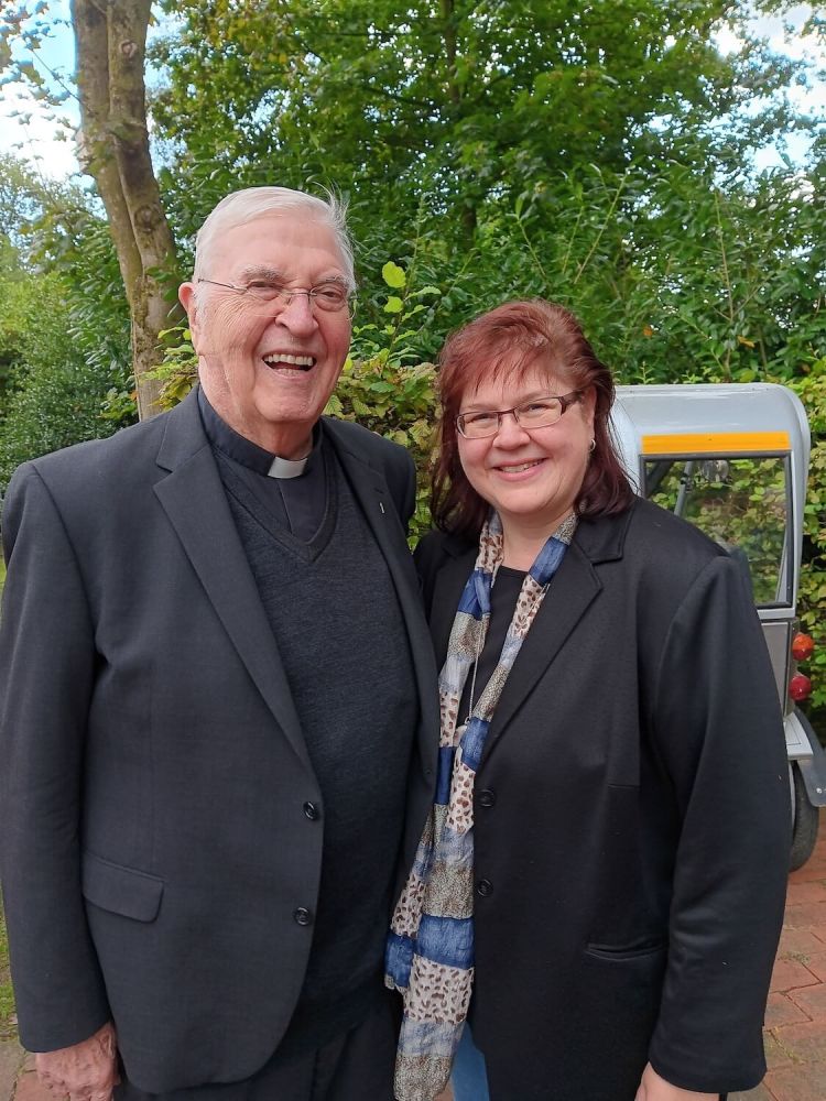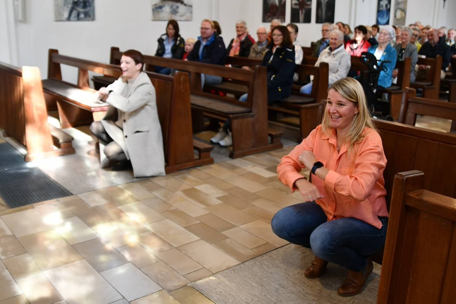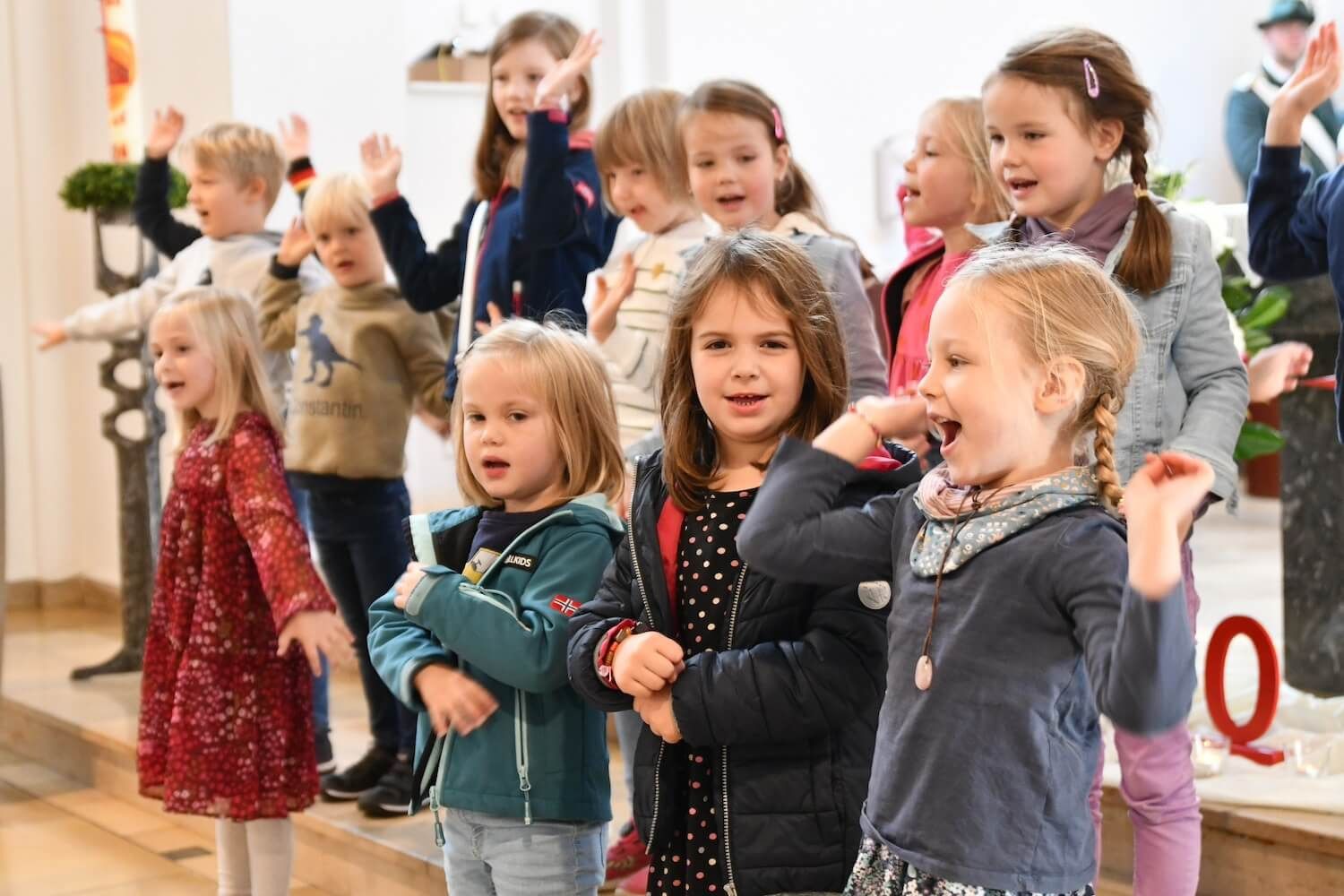 Der 86-jährige, inzwischen emeritierte Priester war von 1974 bis 1987 Pfarrer in Stapelfeld und freute sich sichtlich, nicht nur als Konzelebrant an der Seite von Dr. Marc Röbel wieder einen Gottesdienst hier zu feiern, sondern beim anschließenden Pfarrfest auch viele seiner damaligen „Schützlinge“ wiederzusehen: Ehepaare, die er getraut hatte und die heute schon ihre Goldene Hochzeit hinter sich haben, Taufkinder und Messdiener, die er auf ihren Wegen begleiten durfte und die er alle noch wiedererkannte. Deren Kinder und Enkel lernte Dr. Hagemann dabei auch kennen; einige sangen mit in der neuen Mini-Schola, die für ihren ersten Auftritt mit großem Applaus belohnt wurde, ebenso wie der Chor „Voices“, der das Hochamt mit Liedern zum Thema „Kreuz“ musikalisch gestaltete.