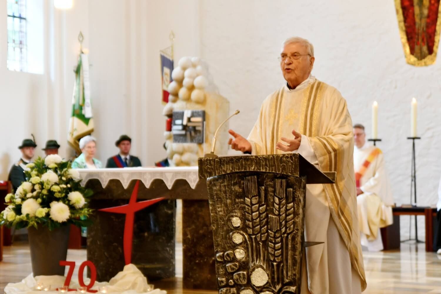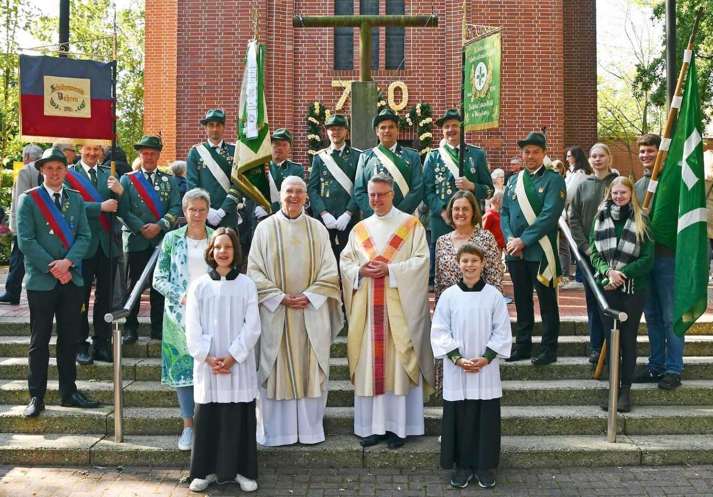 Mit Festhochamt und Sektempfang, Grill-Party, Quiz und Zeltlager-Feeling feierte die Rektorats-Gemeinde Heilig-Kreuz in Stapelfeld-Vahren am 15.09.2024 das 70-jährige Jubiläum ihrer Pfarrkirche. Auch Bürgermeister Neidhard Varnhorn gratulierte.